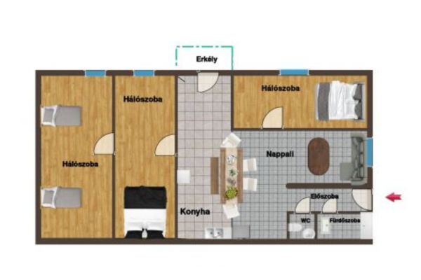 Discover the charm of the Balaton Highlands in this spacious 64m² apartment, situated in an exclusive 10-unit complex designed for year-round comfort. This residence is perfectly laid out for families or hosting guests, featuring three private rooms plus a central living area that opens onto a private balcony with stunning views of Lake Balaton.